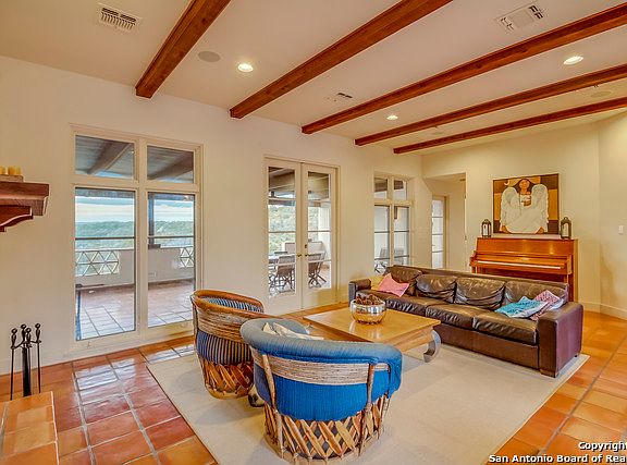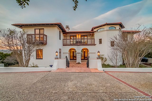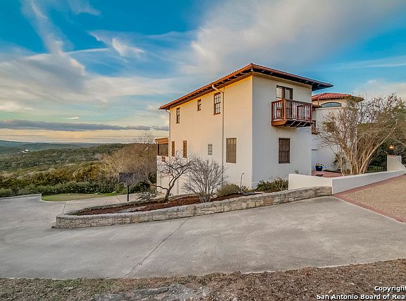 Beautiful, custom La Cantera style home with breathtaking hill country views. Courtyard entry and open floor plan. Enjoy stunning sunsets and entertaining on a large covered outdoor living space, at the pool or throughout the home. Every room has access to a balcony or porch. Master suite downstairs on main level. Mother-in-law suite on basement level. Large game room upstairs. Ludowici, Italian roof tile. Saltillo floor tile w/ hand picked Mexican talavera accent floor tiles. 4 car garage with work space.