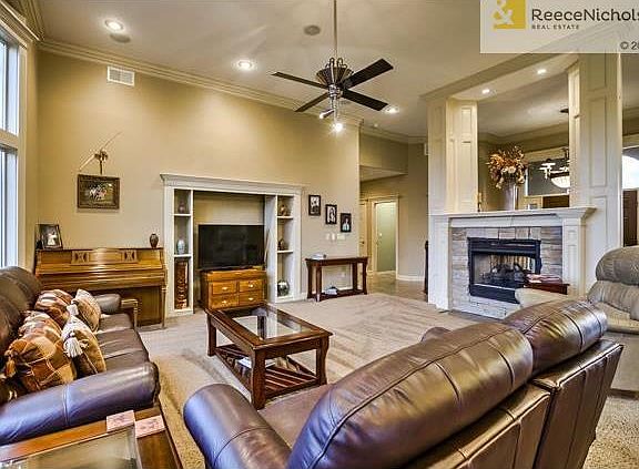 Stunning custom home on 2.7 acres. Iron fence & stone pillars in front. NEW roof & gutters. Large master with office, sitting area & amazing bath. Deluxe kitchen equipped with double ovens, gas range, custom cabinets, & access to recently refinished deck. Great room with see thru fireplace & walls of windows overlooking a private lot. Spacious walkout basement with 2nd master suite! Large lower level patio with gas fire pit perfect for entertaining. Solar lighting & intricate landscaping. Stocked pond with a dock!