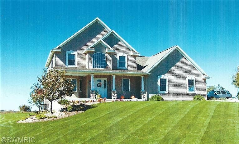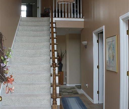 Absolutely gorgeous hilltop setting overlooking countryside and open fields. Shows great w/ lots of fresh paint, flooring, granite in kitchen and remodeled large mudroom w/ wainscoting. Finished garage has attached workshop which could be 3rd stall. Charter cable and high speed internet available. Sliders to 2 tier deck w/ awning, fire-pit, garden area and swing set. Large master bedroom suite w/ cathedral ceilings, double closets, walk in closet. Large pvt bath w/ whirlpool. 2 story foyer. French doors leading to office/music room/ FDR or flex room. Set up for generator. 9' ceilings in Daylight. Room desc: 2 story foyer, flex room/office/fdr, great room, kitchen, dining area, main floor utility, mudroom, 1/2 bath up: master bedroom suite, 2 bedrooms, ba dn: 4th bedroom, bath and storage