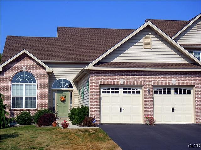 Lovely twin home in the much sought after subdivision of Trexler Fields & Parkland School District. Many upgrades can be found in this 3 bdrm, 2 ½ bath property. As you enter this house you are greeted by a2 sty foyer which opens to a DR & LV w/vaulted ceilings. The large kitchen has granite countertops, eating bar, extra cabinetry, & brkft area. Tile floors are found in this area along w/all bathrooms. The 1st floor master has a tray ceiling and the ensuite bath has a soaking tub, double bowl vanity, shower, & water closet. Upstairs there are 2 add’l bdrms, full bath & open loft space. Basement could easily be finished & is a total walk-out. You will fall in love w/this outstanding yard. There is an upper level composite deck w/electric awning and stairs to a beautiful brick patio with sitting wall & blt-in firepit. A newer shed is great for outdoor storage & the yard is wooded in the rear & very private. Make this house your next home!