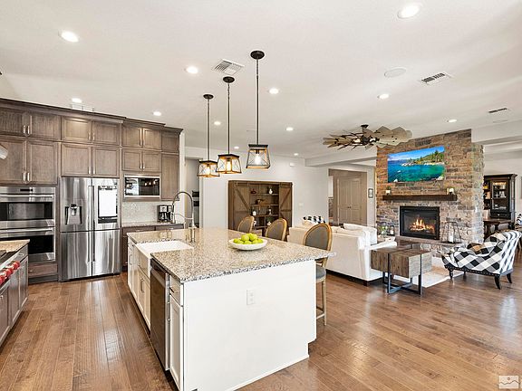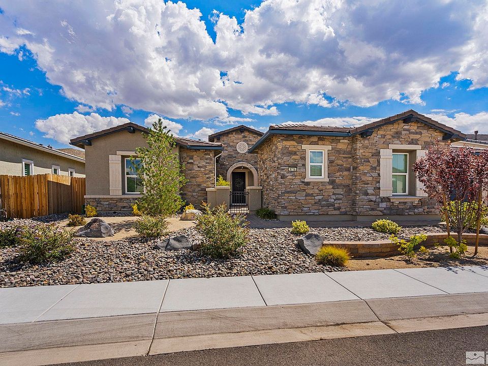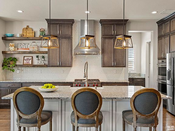 Stunning Single Story Home nestled in the desirable gated community of Sorrento Trail in Bella Vista Ranch! All 4 Bedrooms each have their own full Bath and walk-in closets! Great Room boasts ceiling height cabinets, large island with granite counters, Java Smoked soft close cabinets and drawers, farmhouse style sink, Breakfast Nook, Butler's Pantry and Mud Room., Other amazing features in this home include: Stainless steel appliances including: Wolf - 6 burner gas cooktop, double ovens and microwave built in, Smart Refrigerator/Freezer/Wine Cooler Combo that stays, brand new dishwasher and freezer in pantry that stays. Inset lighting, large ceiling fan, wood floors and gas fireplace with slate rock wall. Three panel glass slider leads out to the covered patio, outdoor kitchen, sitting area with firepit and beautiful backyard overlooking the creek, panoramic mountains views, wild horses and water fowl, perfect for entertaining family and friends! Foyer and separate Dining area highlight 12ft open beam coffered ceilings. Primary Suite features 12ft coffered ceiling, interior window shutters, California style walk-in closet, barndoor leading into the gorgeous Bathroom complete with two separate vanities, soaker tub, walk through shower with multiple shower heads and two benches. 4th Bedroom can be used as a guest quarters or an office with slider door out to the courtyard! Garage has epoxy floors. Close to trails and paths, wetlands, creek, City of Reno Cyan Park, schools, shopping and dining! Just a short distance from Veterans Parkway and the Southeast Connector. Easy freeway access and minutes away from Sparks, Summit Mall, Lake Tahoe beaches, and several world-class ski resorts. Sorento Trail at Bella Vista Ranch residents have access to the community clubhouse, pool, spa and fitness center!