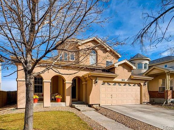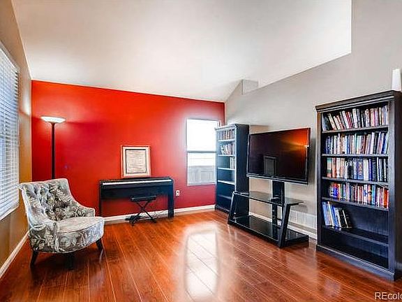 WOW!! Amazing architectural design rarely seen in this price range! This Gorgeous home welcomes you with a dramatic two-story Grand entry with a round turret. Open living with highly sought after main floor master suite and 5-piece bath. Soaring vaulted main floor has formal living/or Dining off the entry. Kitchen has new stainless appliances, and sunny breakfast/dining nook. This is an "open," great-room concept with dark laminate flooring throughout the main floor. Family room is off the kitchen with beautiful views from huge window. Main floor laundry and powder room. Central A/C. Upstairs are two bedrooms and a full bath shared by secondary bedrooms. This home includes one of the largest basements in the neighborhood at 1,236 square feet, two large egress windows ready for your custom finish. Privacy! No neighbors behind! Dunes Park is a lovely neighborhood with community pool and park. Only 15 minutes to downtown Denver and DIA. Hurry on this one! Privacy! NO...neighbors behind!