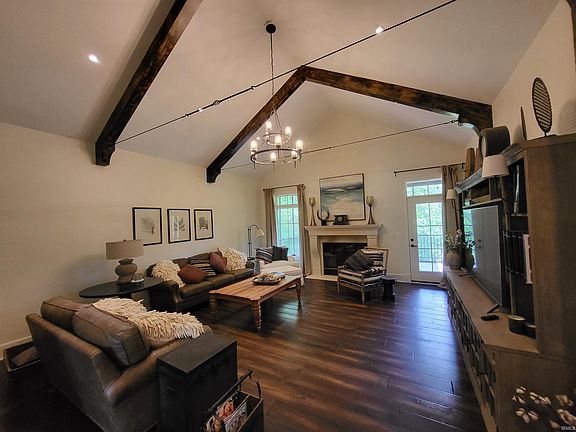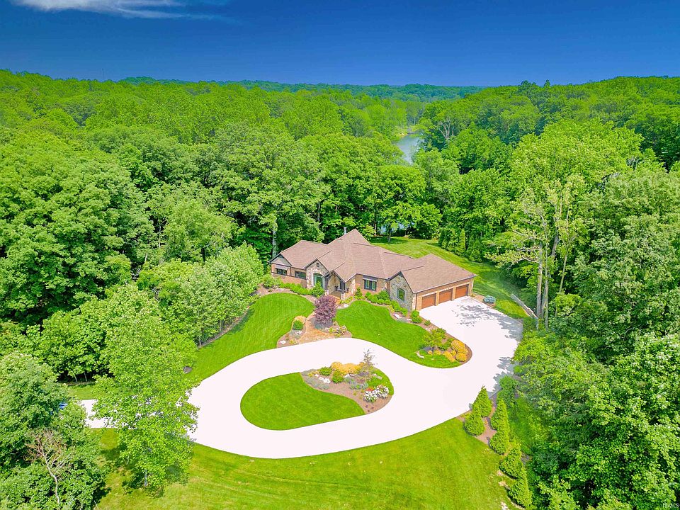 You won’t have to do a thing to this beautiful custom-built home nestled on 10 acres of peaceful, natural heavily wooded surroundings, including nature trails and a stocked 3 acre lake, a 40 x 60 pole barn, and a completely remodeled guest house, to start living a dream. No detail was spared when this home was built by Brian Stevens Homes in 2016. From the amazing landscaping surrounding the French Country Style which features solid wood exterior detail, this home screams quality. As you walk up the stamped concrete walk to the beautiful, covered porch, you are welcomed into the round cathedral foyer. From there you can see the great room entry framed with wood sourced from a 200 year old barn in Ohio and hand made cable bracing across the vaulted ceilings. There is an oversized gas burning fireplace and a door onto the screened porch that leads to a patio with iron deck railings custom designed to complement the wooded surroundings. The kitchen is adjacent to the great room and offers a spacious eat-in area large enough for a grand harvest table. The kitchen is beautifully appointed with stainless appliances, an amazing island with natural edged granite, solid wood Amish built cabinets with built in hutch, and a large walk-in pantry. The laundry is conveniently located between the kitchen and the huge 3 car garage. To the north of the great room is a first-floor master suite with his and her walk in closets, a large master shower uniquely designed with dual entry, separate vanities, and private water closet. The walk out lower level is massive with 3 additional above grade bedrooms, 2 full baths, and tons of room to play and live, lots of storage, and a safe room. The house is highly efficient and has a whole house generator. The electric dog fence covers 7 of the 10 acres. The remodeled guest house on the property is ideal for extra space, in-laws, guests, or rental income. The pole barn is extra big/tall 40’ x 60’ with an office, a kitchen, a second level mezzanine for storage, and additional covered area for outdoor equipment/firewood.