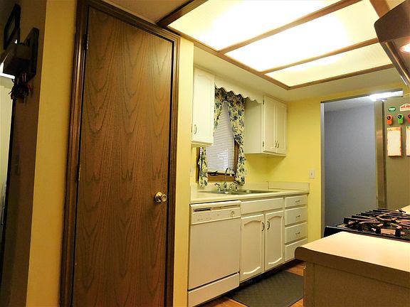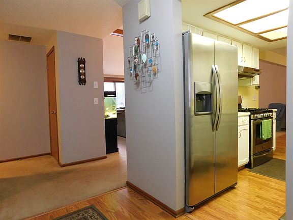 This quality home in a semi secluded, quiet environment is what you've been waiting for. Located at the end of the dead end cul-de-sak and partially wooded surrounding with a trail that leads to the school is the setting for this quality home. New TRANE 2 stage GFA/ 2019 and CA 2017 also WiFi thermostat. All interior has been painted including ceilings. The galley kitchen with laminate floor has quality newer gas stainless steel range, hood vent over range and side by side refrigerator with water dispenser, recently painted cabinets and new hard ware. Pantry/closet only a few steps away. It adjoins the quaint eating area with portable table that remains. Laminate in foyer leads to the spacious great room that will captivate you. An angled brick fireplace, the high, beamed cathedral ceiling, a new ceiling fan, surround sound and double patio door that allows viewing and access to the 16x14 deck where you will find privacy and nature in the large back yard. Oversized garage has 13x4 bump out at back, auto light, peg board. The free standing shelving and refrigerator remains. Very nice.