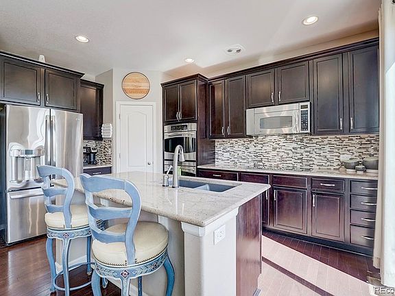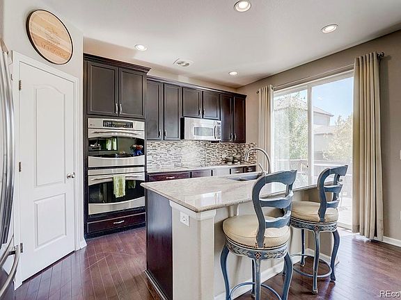 Beautiful 4-bedroom, 3-bathroom, two-story home situated in popular Fronterra Village. This cozy well-cared for home features a beautiful kitchen with granite countertops, double-oven, tile backsplash, and plenty of cabinet space. The kitchen and living spaces flow together, leading to the back deck and patio, perfect for entertaining and family gatherings. The upper level features all four (4) bedrooms, an office space, and laundry room for convenience. The unfinished basement already has framing complete ready for your touches and an added living/recreation space . Plenty of parking and storage with a 3-car garage and a backyard finished shed for your equipment or tools. Minutes from Reunion Park, Buffalo Run golf course, and easy access to DIA and downtown Denver. Don't miss your opportunity to tour this home.