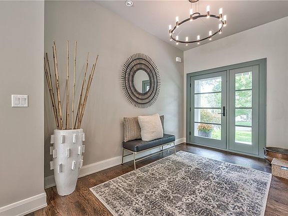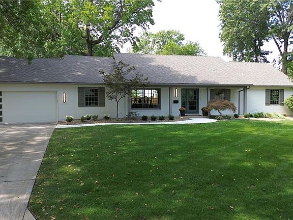 A cut above - Where Sophistication meets Today's Lifestyle! Cool, completely reimagined, and thoroughly renovated to the studs, this new open floor plan provides exceptional main-level living. There are many custom details throughout this house, including a "one of a kind" glass office. The top-of-the-line kitchen includes a huge island with a quartz waterfall counter, a 60" refrigerator, a 36" Bertazzoni gas range, a walk-in pantry, and beautiful custom cabinetry plus plentiful built-ins. The large footprint main floor encompasses a great room, kitchen, dining area, office, living room, laundry, half bath, drop zone, a recently expanded Primary bedroom with dressing room, 2 large closets, and a luxurious bath, as well as a secondary bedroom with private bath. The finished lower level provides 2 additional bedrooms with a shared bath and a family room. The newer roof compliments the all-new electrical panel, wiring, insulation, water heater, and plumbing, yet it will be the all-new sheetrock, trim, doors, hardware, entirely oak floors on the main level, and stylish fixtures that will catch your eye. The dry basement offers additional storage as well. The sprinkler system and freshly landscaped all add to the easy living of this home. The Leawood location is exceptional; close to many shops, parks, restaurants & highways. Distinguish Yourself with this treasured property.