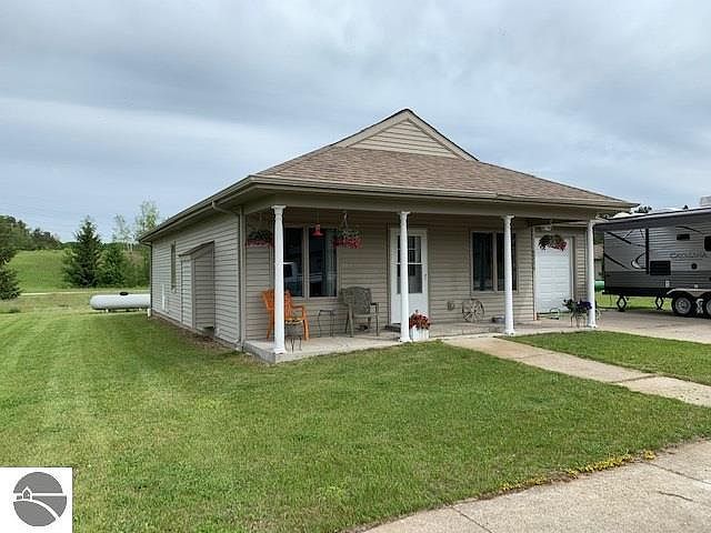 Relax on the covered front porch of this 3/2 stick built home with open floor plan, cathedral ceilings and the back patio with countryside views. The inviting kitchen has seating at the breakfast bar and comes with all appliances. Central air, main floor laundry, half bath for guests, with two additional full baths in both the master and second bedrooms. The third bedroom has access to the back yard. The shell of the home was built in 1991. The interior was completed in 2011 and permitted with Kalkaska country for the 3 BR with all new mechanical, plumbing, electric, bull-nosed drywall, kitchen, baths, flooring including a new roof. Paved driveway. Site Condo. Association dues cover water, sewer, lawn care, snow removal and trash removal. Easy commute to Kalkaska and Acme.