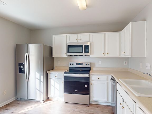 Great 1 Story End Unit Condo freshly painted and brand new luxury vinyl plank flooring through out condo. Walk to the the rocking chair front porch before you enter into the foyer. The large open living room / dining room combo features vaulted ceiling and a gas log fireplace. The eat in kitchen has ample counter and cabinet space along with a pass through window into the dining area with views into the living room as well. The unit has a split floor plan with the master suite located in the rear of the condo with a walk in closet and private full bath. The spacious secondary bedrooms along with a full bathroom and laundry room are located in the front of the condo. Relax or entertain in the semi private rear patio area. Location is close to restaurants, malls, shopping, business, you name it. Contact us today for your private tour.