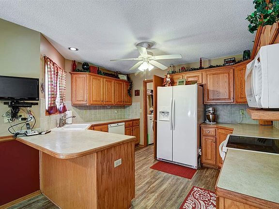 What a great location for this well-cared for Northwest-side Ranch in Maize schools! Sitting in a quiet, established neighborhood but minutes from churches, restaurants and shopping in New Market Square and north Maize Rd. Attractive front yard with mature trees greets you. Enter into a sizable foyer and cozy vaulted Living Room featuring gas Fireplace flanked by windows letting in natural light. The kitchen/dining combo is outfitted with new wood laminate flooring. A large kitchen peninsula with eating bar is so convenient, abundance of cabinet space plus all kitchen appliances stay with the home. Tray ceiling & big walk-in closet are found in the Master Bedroom with double sinks, separate vanity, tile flooring in the Master Bath. Two additional nice-sized Bedrooms, Hall Bath and laundry room round out the main level. You will love entertaining or spending family time in the large view-out finished basement sporting a dry bar that stays. The pool table is negotiable. Big 4th Bedroom and 3rd full Bath with new vanity & tile floors + large storage room finish out the basement. Also laundry hookups are here if you prefer. Access the backyard through French doors in the Dining area to the deck with new steps, new composite flooring. Large concrete & brick patio, wood privacy fence, sprinkler system, well, storage shed. New roof, some new siding & new garage door opener. Two new basement windows, 3 new window sills, some new interior paint. With over 2700 finished square ft, this home may be just what you're looking for - Don't let it get away!! Call to schedule your private showing!
