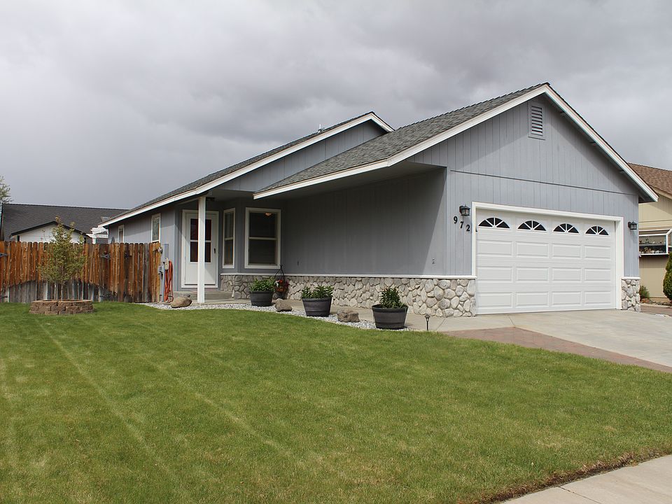 Adorable home with upgrades in quiet Sunridge neighborhood! Single-story 3 bedroom with spectacular mountain views! Open floorplan with vaulted ceilings. Kitchen has tiled counters, stainless steel appliances and breakfast nook. Master with his/her closets and newly-remodeled bathroom including a garden Jacuzzi tub! Additional bath also remodeled! Backyard is fully-landscaped w/ covered patio, storage shed and dog run. Must see - this won't last long!