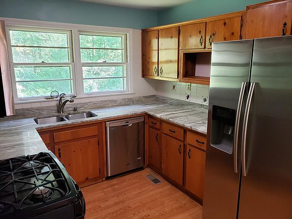 This is a single family home on a quiet street in a quiet neighborhood. Pergo flooring throughout, except for hardwood in the den and tile in the bath and half bath. From the side door, enter the den with a large picture window overlooking the wooded area behind the backyard. Next is the kitchen with updated stone counter tops and a bar counter between the dining room on the left. Forward is a bedroom/laundry room with updated washer dryer and a large cabinet that can be removed or can serve as a pantry. The washer/dryer can also be moved into the basement if a third bedroom is needed. Next is a hall with the bathroom to the right. It has been updated to include a jetted tub with a small detached shower. Beyond that, to the left, is the door to the living room, which is open to the dining room. It currently has a china cabinet that will be removed if requested. Beyond the living room door are two bedrooms, one with a half bath attached. Below is a full basement which is available for shared access with the owner. A pool table is being restored and will also have shared access. All basement access terms to be mutually arranged. The tenant will pay for electricity, gas, and water, and agree to keep the dehumidifier at a reasonable setting at owner discretion, even if the basement is not used in any way by the tenant One year lease is preferred Smoking is not permissible Pets are allowed, subject to negotiation and additional deposits Basement access by the owner is allowed, subject to negotiation Lawn maintenance is not required by the tenant Repairs are not required by the tenant Access to the back woods by the owner and dog will be allowed, subject to negotiation