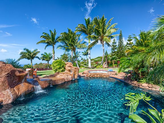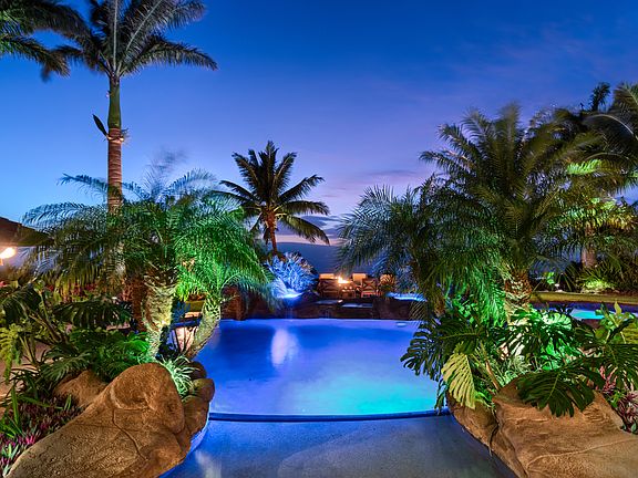 972 Kai Hele Ku is an exquisite residential estate perched at the pinnacle of the prestigious Launiupoko neighborhood in Lahaina, Maui. This luxurious, gated home boasts dramatic 180-degree views of West Maui Valleys and the boundless Pacific Ocean, with the outer islands of Moloka'i, Lana'i, and Kaho'olawe set in the backdrop. Spanning a generous 3,400 square feet of interior space on a one-acre lot, this single-story home epitomizes island-style elegance and comfort. There are four bedrooms, each with en-suite baths. The Primary Bedroom's spa-like bath has a jetted tub, steam shower, and direct access to the lanai. The guest Primary Suite is equally spacious, with an ADA-friendly en-suite shower, and a private patio. Outside, an oasis-style swimming pool features a fabulous beach-style entry and a 12-person deluxe hot tub. There is also an outdoor shower, a large gas fire pit, a modern outdoor grilling area, and an abundance of lounge areas. The landscaping is incredible, with mature palms and tropical foliage creating a lush and serene environment. The home's Great Room features recessed ceiling lighting and a wall of sliding pocket doors that open onto the covered lanai. The kitchen has granite counters, a double oven, a refrigerator, and stainless-steel appliances, including a dishwasher, gas stove, and convection oven. The center island and bar seating provide ample meal preparation and casual dining space, while the walk-in pantry offers additional storage. A pass-through window from the kitchen allows meals to be passed easily from inside to the outdoor bar area. The home is designed for fine island-style living. Every detail of 972 Kai Hele Ku has been meticulously curated, making it an idyllic living space in a quiet, residential West Maui neighborhood. Screening: Tenant agrees to submit to third party (TransUnion) tenant screening prior to approval Tenant is Responsible for: - Rent $15000per month plus General Excise Tax 4.712 percent - Utilities Terms: Tenant is responsible for Electricity and Propane Owner will pay all other utilities (landscaping, pool service, water, trash). - Furnished - Term: minimum 6 months - Available Date: 09-15-2025 Additional Note: Tenant agrees to submit to third party (TransUnion) tenant screening prior to approval