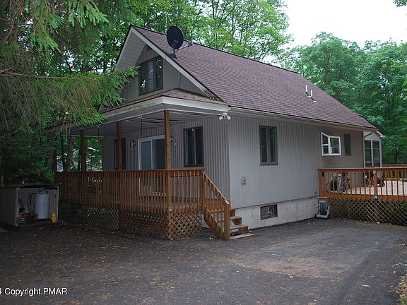 This Chalet is located in Pleasant Valley School District Chalet. The home is nestled on over an acre of land. Enter through the front sliders where you will find an open concept Living room, dining room and kitchen combo. Home features bamboo floors and an updated kitchen. Primary bedroom is located on the first floor next to a beautiful three-seasons sunroom with skylights. Upstairs, there are two more bedrooms and a possible fourth in the basement. The basement has a lot of extra space which could be used for more entertaining. Above ground pool with decking. Complete privacy. New septic. Current owners are relocating. Priced to sell. Bring all reasonable offers.