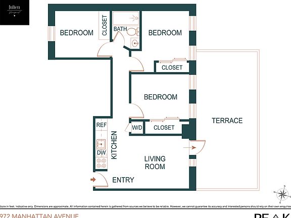 NO BROKER FEE + PRIVATE TERRACE + ROOFDECK !! Apartment Characteristics: - 3 Bed/ 1 Bath - Roof deck - Stainless Steel Appliances - Washer/Dryer - Dishwasher - Microwave - Split System A/C - Granite Counters - Hardwood Floors - Virtual Doorman (Carson) 24/7 remote doorman and Carson mobile app for package notifications, building communication, video intercom and access control. The building is located a block from Subway Stop on the G Train and is a 15 minutes ride to Midtown Manhattan and Union Square. Great neighborhood with restaurants, bars, and shopping. Proximity to Greenpoint Public Park! Quick and easy approval. For further information or to schedule a viewing by appointment. Please contact Smoking allowed:No