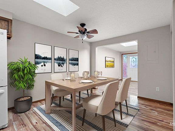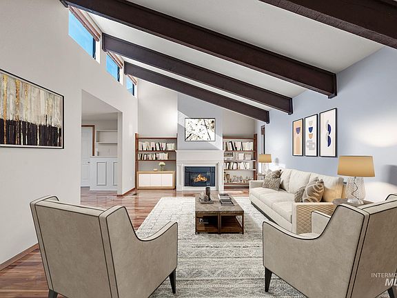 Welcome to the Meadows, located in a beautiful private townhome community with walking paths and mature trees. This single-level home has fresh interior paint, an open floor plan with gorgeous wood floors, vaulted ceilings, skylights, and a cozy gas fireplace in the living room. It is a 3 bedroom, 2 bath home with attached 2 car garage located on a quiet dead-end street. The primary suite has a large walk-in closet. Conveniently located next to the Boise Racquet and Swim Club, grocery stores, restaurants, the Boise Towne Square Mall and St. Alphonsus Hospital. The washer, dryer, and fridge are included. The HOA covers exterior paint and landscaping, with a gated RV/boat parking area available for an additional fee. B.T.V.A.I