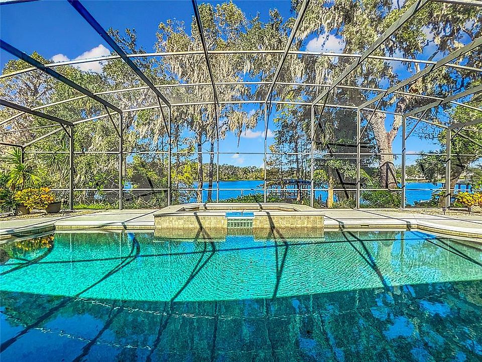 MUST SEE!! Rare and exquisite 3-bedroom, 2 bath SKI LAKE home with office/bonus room, BRAND NEW ROOF, NEWER AC (2020), vaulted 18' ceilings, large windows and French doors, walnut parquet hardwood flooring with hand-crafted herringbone inlays, art deco chandeliers, enormous screen-enclosed pool/spa/pool deck, and covered dock on a beautiful, private ski lake with sunset views from almost every room! You are not going to find an elegant lakefront home like this one, for this price, in all of greater Orlando. Abundant natural light and stunning water views illuminate the spacious formal living room, formal dining room and family room. The family room features custom, solid-wood built-in shelving and cabinetry, a chimney/fireplace with propane-powered fire and “Real Fyre” logs, and French doors opening to the pool deck/lake. The Gourmet Kitchen includes newly painted cabinetry, new hardware, premium granite countertops, brand new Frigidaire French door refrigerator, stainless appliances, ceramic cooktop with vented hood, island, pass-through serving window, bar seating and breakfast nook, all with gorgeous lake views. Master suite features wood plank flooring, French doors opening to pool deck/lake, and spa-like master bath with double vanities, jetted tub, enclosed shower with handheld and walk-in closet. Massive screen-enclosed pool deck with oversized pool and waterfall spa overlook picturesque 90-acre Lake McCoy, a skiable lake lined with cypress and live oak trees. Flagstone steps through mature, native tropical landscaping lead to the large, freshly painted covered dock and cypress-lined waterfront. This home is a rare jewel, uniquely designed for Florida lakefront living and entertaining in style and comfort! And if that weren't enough, you'll be amazed at this home's central location: only 5 minutes to Publix and Apopka shopping/restaurants, 10 minutes to Northwest Recreation athletics park, Wekiva Springs and Rock Springs, 15 minutes to Altamonte Springs and I-4, 20 minutes to downtown Winter Garden, 25 minutes to Winter Park, 40 minutes to Disney attractions, 1 hour to New Smyrna Beach, and just 10 minutes to 429 which quickly transports you to all Central Florida attractions. This home won't last, schedule your private tour today!