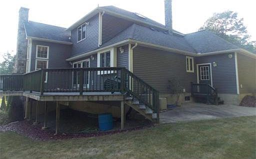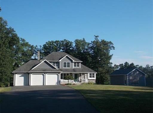 Enjoy privacy and seclusion in this custom built home set back from the roadway and overlooking the Chicopee River. Open floor plan with master suite on 1st floor, sit on rear deck while viewing the river. Attached 3car garage (heated). Walk out basement with 10ft walls, single door and slider to patio, full bath, possible in-law apartment. 2nd flr has 2 bdrms and full bath, office open above foyer, can be closed off for a 3rd bdrm. Working FP, HW flrs thru out entire house, C'tile flrs in kit and baths, granite kit counter, 2 zone HVAC, central vac, NEW water heater. Detached 16x30 2 level barn/garage for the handy man work shop/car enthusiast, lower lvl is insulated, electrical, air hoses, upper level great storage.