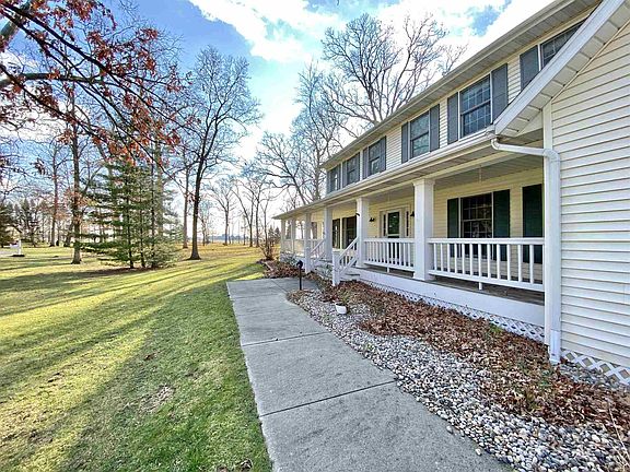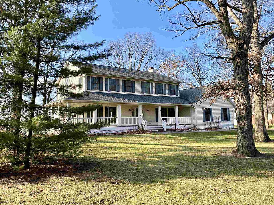 Two story traditional colonial style home located in a wooded subdivision. This stately 4 bedroom home sits on just under an acre lot with a wrap around covered cedar porch. Quality shines through in this custom built one owner home with approx. 3472 finished sq ft, Andersen windows, 9ft ceilings on main floor, wood trim, and hardwood floors throughout. Updated kitchen has painted cabinetry, SS appliances, solid surface countertops, large pantry and a sunny breakfast nook with floor to ceiling windows. Cozy main floor family room has fireplace w/gas log (or it can be set up for wood burning). Dining room has french doors that separate it from living room. Large master bedroom has 2 WIC's, window seat w/storage, skylight, private bath and jetted tub. Main floor laundry mudroom with 2 large closets, includes washer/dryer, extra refrigerator, and 2 car attached garage w/workshop area, extra freezer & generator. Conveniently placed 2 half baths: one for guests and one near laundry/mud room. Lower level has 2nd family room (20x13) and lots of shelving & storage space. New roof in 2016, updated gas water heater, and Culligan water softener. White picket poly-vinyl fenced backyard, firepit, swing set, and garden shed. Tons of closet space throughout the home and it even has a beautiful main floor library! Dynamite unobstructed sunset views and great location just minutes from town with easy access to US 31.