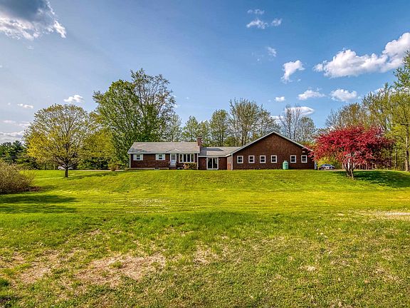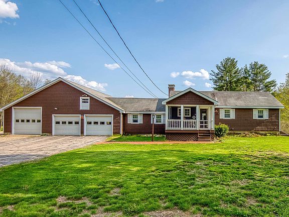 WONDERFULLY MAINTAINED SINGLE LEVEL HOUSE WITH BEAUTIFUL LARGE OPEN FIELD AND 727 FEET OF FRONTAGE ON STONY BROOK! This adorable two bedroom home with a separate office or nursery offers a great opportunity for a family who needs garage space or land for animals or gardens. Property includes a 40 x 40 garage with four doors and automatic openers, gas heat, insulation, and its own sub-feed electric panel. The house boasts gorgeous natural woodwork including all interior trim and doors. Lovely cherry cabinets in the kitchen. Super living spaces with large great room with a brick fireplace with woodstove insert and glass doors opening onto the private back patio. Dining room features a picture window and exterior door to the backyard and lovely mountain views. There is a relaxing front screened porch with mahogany wood floor. All new windows and appealing oak hardwood flooring. There is a full basement with a newer electric breaker panel and Airco forced hot air furnace as well as a large attic, great for storage. This is a must see home for a family starting out or retiring to desirable Tamworth!! Close to the Brett School and only a short drive to the Barnstormers Summer Theatre, Remick Farm and Museum, and Cook Library. Tamworth is a wonderful town to live in!