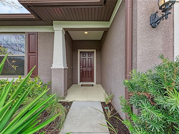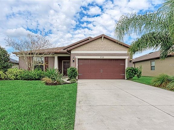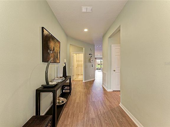 Beautiful Oasis model located in the highly sought after community of Harrison Ranch. This 4 bed/ 2 bath home sits on a great lot with expansive pond views. There is laminate flooring throughout the home, including the bedrooms. The kitchen features stainless steel appliances, pendant lighting, granite counters, tile backsplash, crown molding on the cabinets, and an island that provides extra storage. The home is perfect for entertaining with a kitchen that opens up to a spacious family room. The sliders in the great room open up to the lanai, where you can enjoy sunrises and peaceful, pond views and Florida wildlife. The master bedroom has a large, walk-in custom closet and a master bathroom with dual sinks and a walk-in tiled shower. The split floor plan puts the other three bedrooms and bath at the other end of the house. The home is equipped with hurricane shutters, an irrigation system with reclaimed water, gutters, and a structured wiring package with coax and ethernet jacks throughout the home. Harrison Ranch has an activity director on site, putting on fun events for families as well as active adults. Tampa, St. Pete, Sarasota and beautiful beaches are all within 45 minutes, making this a perfect central location. Recent school rezoning has Harrison Ranch going to a brand new elementary and high school. Enjoy the wonderful amenities that the community offers; Jr. Olympic sized pool, fitness center, pickle ball, and basketball courts, hiking trails, and two playgrounds. Harrison Ranch offers you a beautiful community and a lifestyle you can truly enjoy.