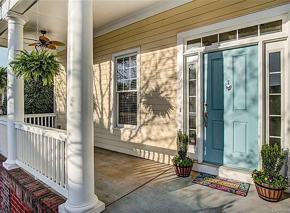 Charming Charleston-style DOUBLE FRONT PORCH home with the Largest YARD in the neighborhood!! Top and bottom front porches have ceiling fans. New interior paint, hardwood floors just refinished. Nest thermostats. Screened porch. Fully fenced back yard. Pull down attic storage over 2 car garage. Neighborhood pool. House is neutral and MOVE-IN ready!! Top-rated schools! Walk to Blakeney shopping center. Minutes to I-485!!