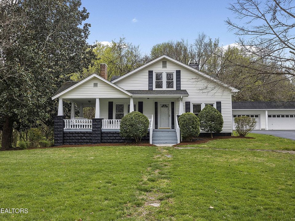 Welcome to your picturesque home nestled in the hills of Strawberry Plains. Built in 1931, this craftsman styled home exudes historic charm while blending modern updates. The covered front porch accompanied with a swing, the back deck, or screened in porch allow you to enjoy nature in all the seasons. Inside you will find a spacious layout including a formal dinning, kitchen, mudroom, full bath, front parlor, a family den, office (which could be used as a bedroom). Upstairs find two bedrooms with walk-in closet and some extra storage. The home has recently been painted inside and all porches out, new carpet installed throughout, plus a new refrigerator and range. Each level has numerous windows allowing for lots of natural light. Huge detached garage running 80 feet by 28 feet, with 4 bay doors accommodating 6 cars and a shed running the full length at the back for plenty of additional dry storage for outdoor equipment, toys, or tractors. All on 5.01 acres! Home is sold as is Buyer to verify square footage. Schedule your private showing today!