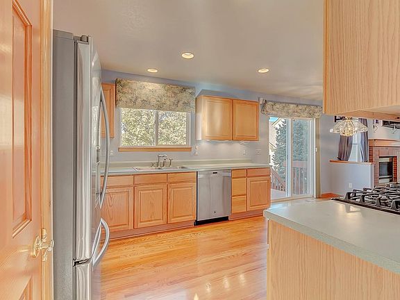 Wonderful corner lot w/ mountain views, 6 paneled doors, wood floors in entry & kitchen, vaulted living room, formal dining, large kitchen w/ eating space, top of the line stainless appliances, redwood deck, family room w/ brick gas fireplace, main floor laundry, upstairs features 3 large bedrooms plus a large loft that could be a 4th bedroom, Garden level bsm't features a large Rec room w/ climate controlled wine cellar, bdrm, 3/4 bath and lots of storage. Newer faucets & shower heads thru-out and brand new roof! Less than 1 mile to shopping, restaurants, rec center, trails, churches & schools & parks. This is a great house!