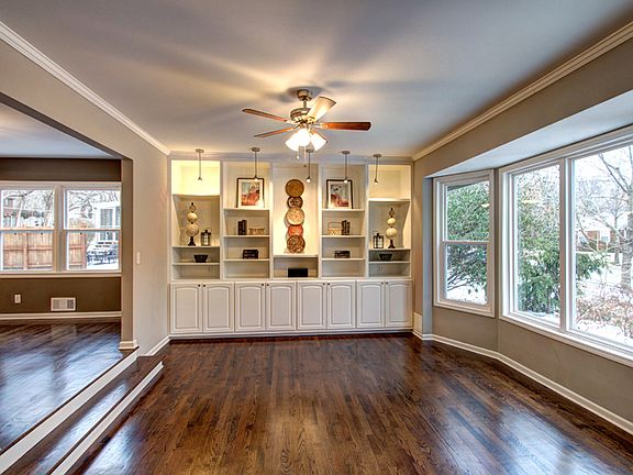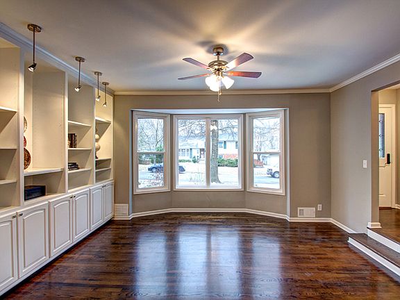 UPDATED AND OPEN, 4 br, 3.1 bath, open concept, spacious rm sizes, lots of living spaces - great for entertaining! Newer: roof, windows, siding, insulation, kitchen appliances, int paint. Living rm with bay window & wall of built in shelves! Lg eat in kitchen w/ island, gas range & pantry, fridge stays! LL Large fam rm WALKS OUT to brick patio & large, private, fenced backyard. Many perennials, sprinkler system. All BR's attach to a bathroom! Master ensuite has HUGE walk in closet, 2 vanities, & lg shower!