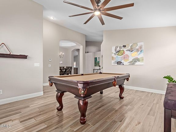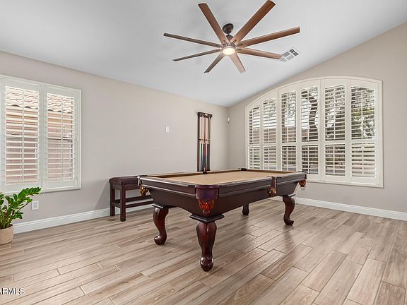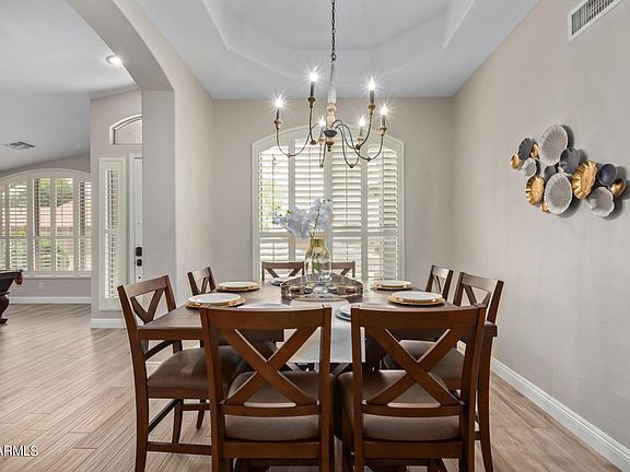 Pride of ownership shines throughout this 4 bed 2 bath single story home in the highly sought after Mesquite Canyon neighborhood in East Mesa. Interior features include open floor-plan, freshly painted, plantation shutters, ''wood look'' tile flooring, Upgraded kitchen countertops , SS APPLIANCES, gas stove, kitchen island, huge pantry, and breakfast nook. Primary suite features double sinks, soaking tub & walk-in closet, exterior access to resort style back yard. Exterior features a PEBBLETEC SALT WATER POOL w/WATERFALL & extended covered stamped concrete patio.