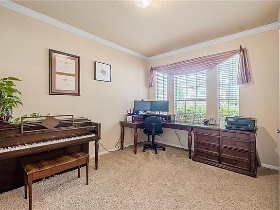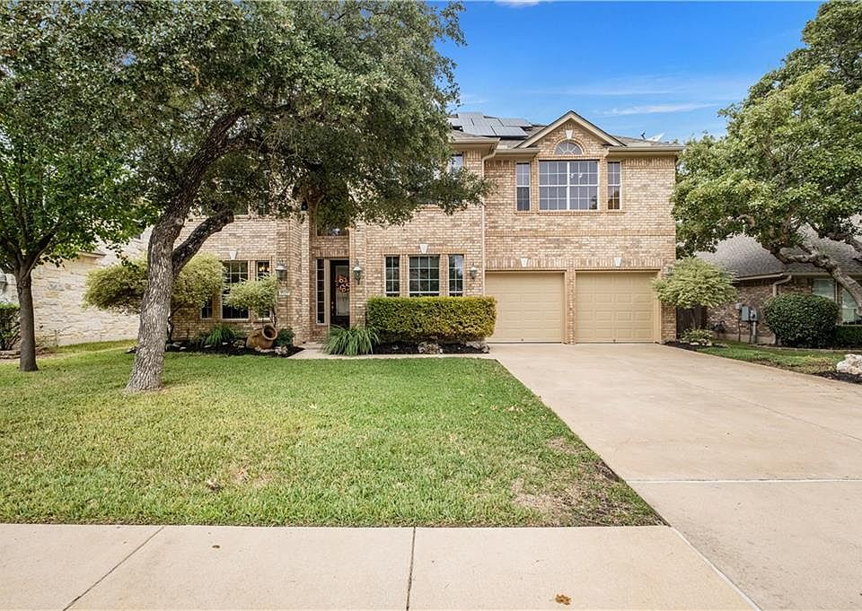 Charming home in highly coveted Parkside at Avery Ranch. Walk to 10-rated Sommer Elementary and zoned for Pearson Ranch Middle School in Round Rock ISD. This home features 8 kW solar system (low electric bills), attractive brick façade, 4 bedrooms including a secondary bedroom and full bath downstairs convenient for long-term visitors, a dedicated office w a large closet plus French doors and formal dining room. Upgrades include double crown molding, wrought iron on staircase, fireplace in the living room, gas cook top w ventilation, gorgeous cabinets and downlights. Walls of windows and high ceilings in the living room, this home is light filled & cheerful. The open floor plan from the living room to the kitchen and breakfast area make this a home an entertaining haven. Kitchen boasts abundance of granite countertops and cabinets for storage, SS appliances, and large pantry. Spacious master suite & game room for retreat. Magnificent outdoor area includes extended patio and new fence!