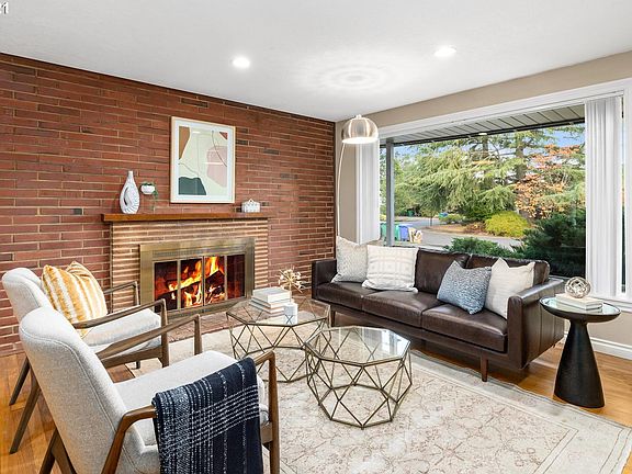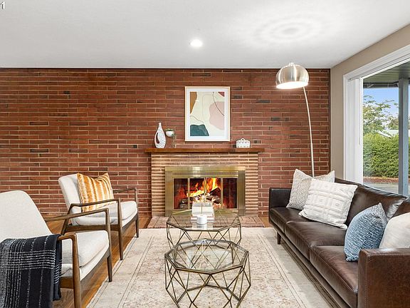 Only the second owner of this well loved Mid-Century modern gem. Features 3 bedrooms and 1 1/2 baths with glistening hardwoods throughout. A beautiful wall of brick accentuates the living/dining room and fireplace. Spacious kitchen w/cherry cabinets, granite & tile floor. Enjoy the light & bright sunroom that overlooks the fabulous & very private outdoor living space with built-in Pool, outdoor fireplace & much more. New roof, gutters, furnace & central air. Great access to shopping & I-205. [Home Energy Score = 3. HES Report at https://rpt.greenbuildingregistry.com/hes/OR10195269]