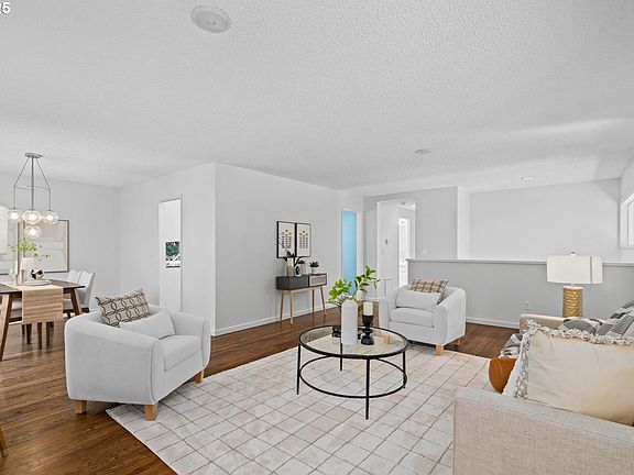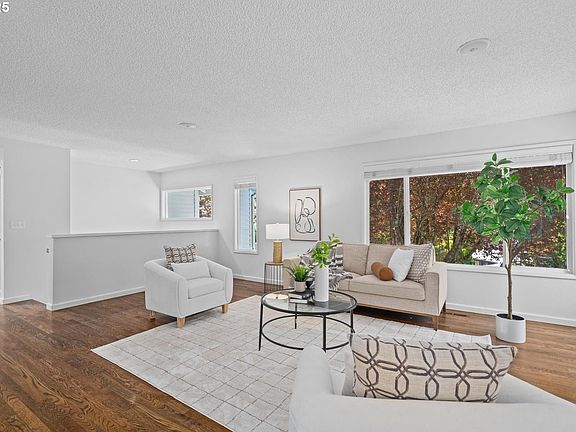 Nicely updated kitchen and spacious common rooms in desirable Quail Park. Beautiful hardwoods throughout main level, with updated tile flooring in bathrooms. Large living room with multiple windows and wood-burning fireplace with granite hearth and surround flows to roomy dining room with modern light fixture. Remodeled kitchen features Shaker style cabinets, slab granite counters, and newer (2024) stainless appliances. Three bedrooms, including primary suite on main level, plus fourth bedroom and third full bath on lower level perfect for visiting family or multi-generational living. All baths have tile counters and floors. Main bath features jetted tub; tile showers in other two. Huge family room with multiple windows and wood stove. Energy-efficient vinyl windows with top down/ bottom up blinds. Spacious garage with extensive built-ins and work bench. Private backyard features entertaining size deck with slab granite serving bar opposite kitchen window. Large side yard. Desirable, quiet and secluded Quail Park neighborhood, yet easy walk to public transit, Tryon Creek State and Marshall parks. [Home Energy Score = 4. HES Report at https://rpt.greenbuildingregistry.com/hes/OR10238619]