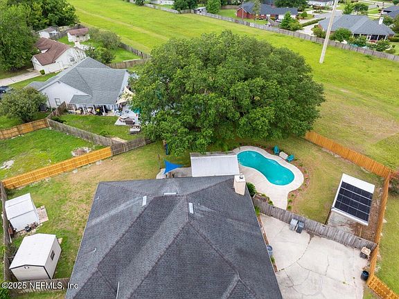 Tucked away on a quiet cul-de-sac, this beautifully maintained home sits on a spacious 0.37-acre lot with an oversized yard, a sparkling pool, and a massive screened-in porch perfect for outdoor entertaining. The backyard is fully fenced, offering privacy and plenty of space to play, garden, or relax. The property also features two sheds with electricity and ample parking for all your toys and guests. Inside, the updated kitchen steals the show with its generous size, center island, breakfast bar, backsplash, and cozy breakfast nook. The home also features updated bathrooms, a wood-burning fireplace, formal living/dining room, and an upgraded laundry room with added functionality. The primary suite includes a tray ceiling, double vanity, and a stand-alone shower. With a flexible layout and a backyard built for enjoying Florida living, this home has it all—space, style, and location.