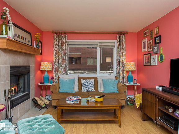 Spectacular upgrades to this charming ground level corner unit! Granite countertops throughout, stainless steel appliances, laminate flooring, white trim/doors & fun vibrant colors to chase away the winter blahs. Cozy up to the wood-burning fireplace or hang out on the private porch. Gorgeous kitchen opens to dining/living spaces. Updated bath w/ high-profile vanity, granite, lighting, etc. Hurry!