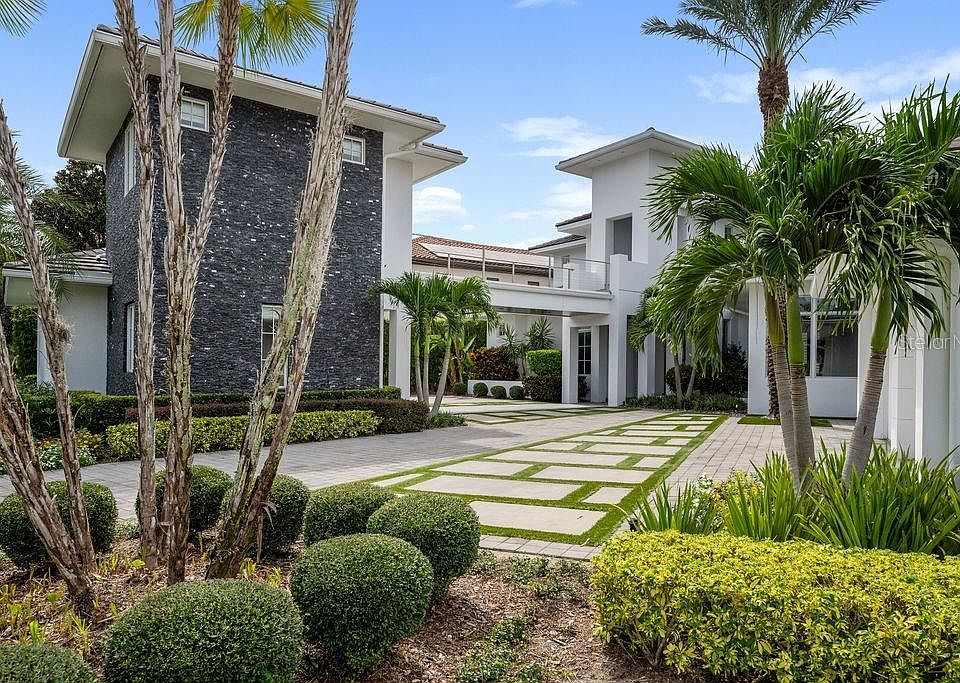 Welcome to 9721 Carillon Park Dr, Windermere, FL 34786 - a stunning FULLY FURNISHED (furniture included-with exception of a few items) , professionally designed estate inside the guard-gated community of Keene’s Pointe. This extraordinary residence offers 8,305 square feet of luxury living space with refined architectural details, elegant wood beams, and designer finishes throughout. MAIN FEATURES: • Five bedrooms plus DETACHED GUEST HOUSE and OFFICE— providing exceptional space and privacy. • Expansive master suite with private sitting room, balcony overlooking the pond, dual closets, fireplace, and breakfast area. • Chef’s kitchen with a large island, seating area, top-of-the-line appliances, and a hidden walk-in pantry. • Bar and game room featuring real wood finishes and picturesque pond views. • Private GYM with SAUNA for health and relaxation. • Nine-seat HOME THEATER with plush carpet flooring for an immersive movie experience. • Four-car split garage (2/2), ELEVATOR, and downstairs laundry room. * Additional laundry closet inside the upstairs primary bedroom closet. OUTDOOR & LIFESTYLE: Seamlessly blending indoor and outdoor living, the open floor plan connects to a heated pool and spa area, surrounded by tranquil pond views and lush landscaping. The fully retractable sliding doors make it ideal for entertaining year-round. RECENT UPGRADES INCLUDE: • Five new AC units (2023) • Hurricane-impact windows and ADT smart security system • New pool equipment (2022) • Exterior repaint (2023) • Full surround-sound system throughout the home COMMUNITY & LOCATION: Located within the prestigious Keene’s Pointe community, residents can enjoy The Golden Bear Club, featuring a Jack Nicklaus Signature golf course, clubhouse, fitness center, and dining. Windermere is renowned for its lakes, top-rated schools, and luxury lifestyle just minutes from downtown Orlando and Disney attractions. This home represents the pinnacle of luxury living in Windermere, offering elegance, privacy, and resort-style amenities. Schedule your private tour today and experience the sophistication of this remarkable estate.