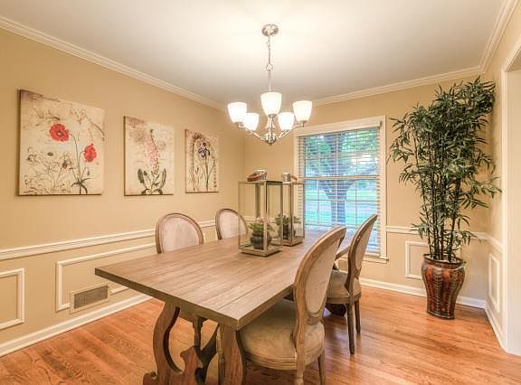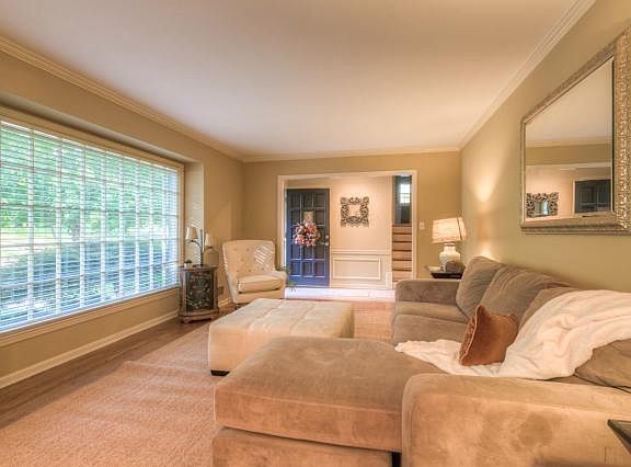 Space with Grace! Elegant Split in Super Condition! Gorgeous Setting-Lush 1/2+ acre yard! Move-In READY! All Interior Freshly Painted! Pretty Stained Refinished Hdwds thru-out. Kitchen opens to Family Rm w/Granite Island. New Granite Countertops, New Travertine Backsplash & S Steel Appls. Generous Rm Sizes. Master has Pvt Bath, Walk-in Closet & 2nd Closet. Enclosed Stairwell to Finished Bsmnt-Perfect Kid Cave! Laundry on Gar.level-Oversized 2+ Car Gar! Newer Roof, 10 y/o Hi-Efficiency HVAC. Lg Shaded Brick Patio.GO