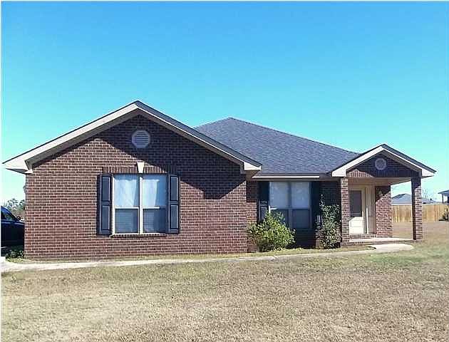 100% USDA no down payment according to map. Good location easy access to I-10 at McDonald Rd. Easy ride to Mississippi, West Mobile and downtown. Great open plan, but your working part of kitchen is roomy with large breakfast bar, ceramic floors, plenty of cabinets, pantry, large eating area in dining room, large master, master bathroom with relaxing tub and separate shower, covered patio off big family room that has a cozy fireplace. Large flat yard. A must see!