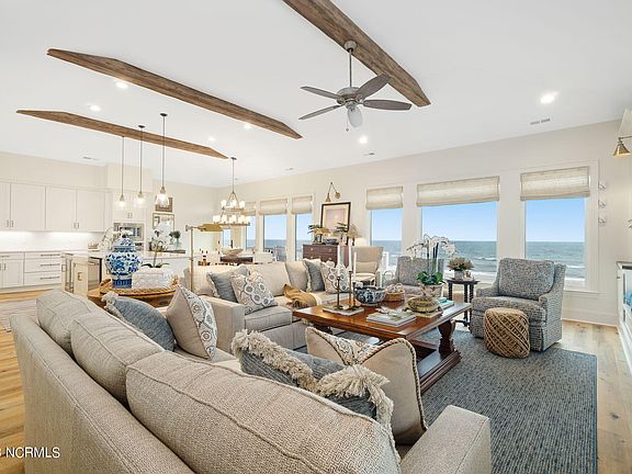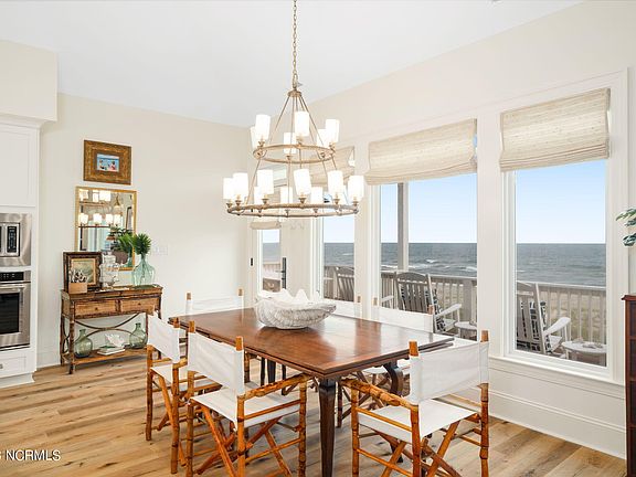 Oceanfront home with a pool in Dolphin Ridge that has been customized by the current builder/owners and is being offered beautifully furnished (exclusions list under documents) and ready to enjoy! The owners have provided an extensive summary of the remodeling work completed on this home since 2020 and add to this, please see the comprehensive and detailed fixture, lighting and appliance packages! This home is now a one-of-a-kind, classic, oceanfront showcase designed for the ease and enjoyment of island living!! The reverse floor plan for optimum ocean viewing features the top floor main living areas and primary bedroom suite with an elevator to all floors. The second floor offers 4 guest bedrooms, a den, kitchenette and 3 full baths. The first floor has an entry foyer and carport access providing covered entry into the home. Outdoor spaces include: a beautiful inground swimming pool, a private oceanfront boardwalk with built-in bench seating, ample oceanside decking, a pergola covered bench, outdoor kitchen area, large patio, storage for pool and beach toys, two oversized carport bays, and an outside shower. There is a professional sketch by an appraiser under documents. The private Emerald Isle Beach & Pool Club located in this neighborhood offers memberships to: a swimming pool, social events, clubhouse with snack bar and more (see documents); this Club is not part of the HOA but a separate entity.