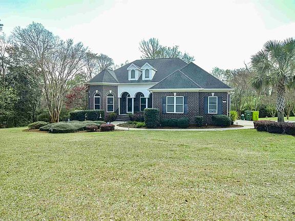 This meticulously maintained home is situated on a large 2.17 acre lot! With an all brick exterior this gorgeous house welcomes you home with rounded archways and white pillars for a traditional southern look. Sit back with an iced sweet tea on your front porch after a long day. Upon entering take note of the high ceilings, chair rail trim, wainscoting, and crown molding throughout. Arches over the majority of the large windows welcomes in an abundance of natural light throughout. You'll notice gleaming hardwood floors and a floorplan perfect for entertaining and everyday living! Built-ins and a cozy fireplace set the tone for a relaxing evening in the living room, or entertain guests in the formal dining area with attractive columns and wainscoting! The updated kitchen boasts attractive tile flooring, an abundance of cabinets, and tiled backsplash! The guest suite is spacious with a large closet and an en suite bath with a dual vanity! The owners retreat boasts wood flooring, a tray ceiling, a sitting room, a walk-in closet, and an en suite bath! The master closet features custom built-in shelving for organization and is incredibly spacious. The en suite bath boats a vaulted ceiling, soaking tub, recessed lighting, a dual vanity, and shower. Upstairs, the FROG makes the perfect guest bedroom or use it as a game room or media room! The seller mentioned furniture, window treatments, and the shed will convey with an acceptable offer & part of the contract. Come see it today!