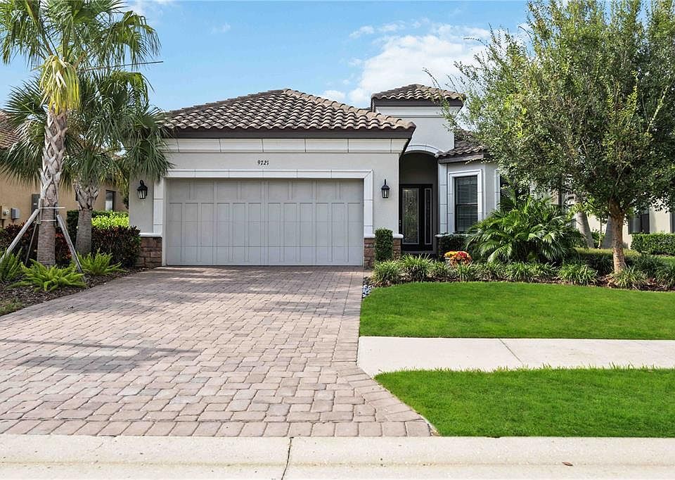 NOTE: One or more of the photos have been virtually staged. This wonderful home is located in the highly desirable Esplanade of Artisan Lakes in North Manatee County. This well-appointed Lazio home has 3 bedrooms, 3 baths, a large den, 10’ ceilings and 8’ doors with beautiful wood grained plank laminate flooring throughout the home. This home has just been freshly painted and is move-in ready! There are tray ceilings and crown molding throughout the living area and in each of the bedrooms and den. It has a private pool, outdoor kitchen, a 2-car plus tandem garage with lots of built-in shelving. This home features an inviting open area combining the Gathering Room, the main Kitchen and the Dining Room. The gourmet kitchen features white cabinets with under-mounted lighting, and pull out shelves, a built-in oven/ microwave and a separate gas cooktop, GE Cafe series appliances and a large walk-in pantry. A large island features a beautiful quartz countertop and cabinets on both sides as well as pull out shelving for easy storage. The extended kitchen allows for additional cabinets and countertop area, perfect for a coffee/tea bar. The spacious owner’s suite features a large triple window that looks out over the pool and screened-in Lanai. It has an en-suite bathroom with dual sinks, white cabinets, a large walk-in tiled shower and a walk-in closet that has been professionally designed with tons of built-ins to keep you well organized! The second bedroom has a walk-in closet and an en-suite bathroom with white cabinets and a walk-in shower. The third bedroom has a large bay window and a full guest bathroom adjacent to the bedroom. The bathroom has white cabinets and a tub/ shower combination. There is a pocket door off the entry that makes this a private suite if desired. All the bathrooms and laundry room have ceramic tiled floors. The Den/Office is a great space for a work space or hobby room . From the gathering room and kitchen, step through two sets of sliding door into your fabulous enlarged screened-in Lanai with an outdoor kitchen and a private pool! The outdoor kitchen has granite countertops, stainless steel appliances and the grill is vented to the outside. The two-car tandem garage has an epoxy painted floor, plenty of room for storage and your new golf cart! Home ownership in the Esplanade entitles your family and guests to the full access of all of the wonderful resort lifestyle amenities. The community center has a “state -of-the-art” fitness center with an on-site lifestyle manager to coordinate special events and activities. As a homeowner, you will have access to the workout equipment, tennis courts, pickle ball courts, bocce ball, the gorgeous resort pool with cabanas , a hot tub and a resistance pool. There are walking trails, dog parks, a playground and a butterfly garden! Your HOA provides all of these amenities plus Cable T.V., Internet Services, and yard maintenance. Don’t miss this rare opportunity to enjoy resort-style living at its best!