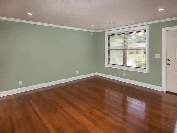 Beautifully remodeled concrete block home has been impeccably redesigned. Amazing paint job with washable interior and exterior paint from the front door to the back. Floor plan features formal living and dining, family room, kitchen, 3 bedrooms, 2 baths and open covered patio. Features include knock down walls and ceilings, crown molding, deep 5½'' baseboards, 3-5/8''crown molding, recessed can lighting, storage closets, rocker switch light fixtures, wood cased windows with 2'' faux wood blinds, beautifully refinished original tongue and groove wood flooring in living, dining and bedrooms, tile plank flooring in kitchen and family room, plus tray ceilings, raised panel doors and upgraded light fixtures throughout. Roof is approx. 5 yrs old and