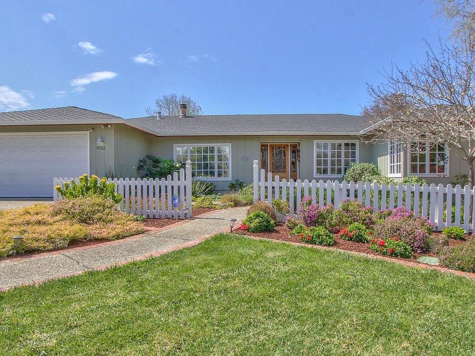 Absolutely Fabulous in Oak Hills! Charm & sophistication converge in this well planned 4 bed 2.5 bath beauty situated at the end of a quiet cul-de-sac on an oversized, stunningly landscaped lot offering room to garden, entertain, play & relax. Throw open the wood casement windows & French doors to enjoy the seamless transition from house to expansive cobblestone back patio, BBQ area, manicured lawn & adorable playhouse. The home boasts a formal entry, large sunny kitchen with new slate colored SS appliances & tiled stone floors, an elegant dining room, formal living room with timbered ceilings & wood burning stove, cozy family room with red brick FP, a romantic master suite with walk-in closet; luxurious remodeled bathrooms & indoor laundry room. Recently painted & carpeted this home is in move-in condition, the solar system is owned and paid in full. There's even room to park a boat or RV. Who wouldn't want to come home to this picture perfect house with the white picket fence?!