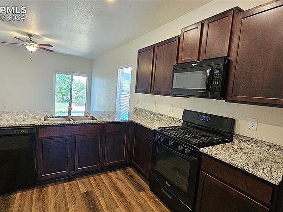 Beautiful air-conditioned one-level living in Lorson Ranch. This open floor plan offers an upgraded kitchen with beautiful granite counters, a large living room, and a formal dining room(or flex room, office). The master bedroom has plenty of space with a 5 piece en-suite, and a walk-in closet. With 2 more bedrooms, another full bathroom, and a large fenced backyard, this home has so much to offer. Close to nearby military installations, shopping and dining!