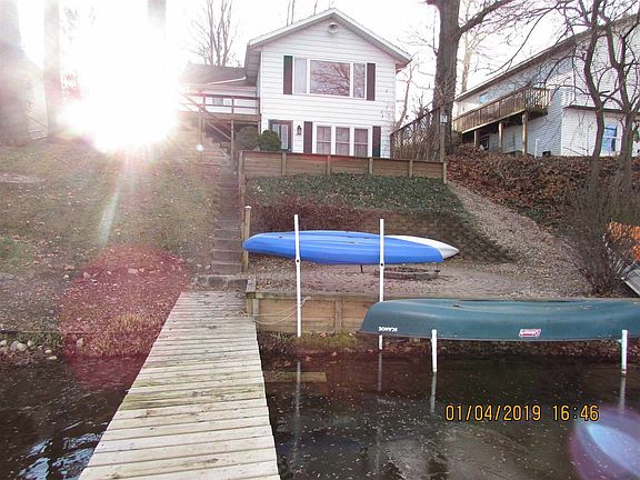 Beautiful waterfront home located on Papakeechie Lake features hardwood floors, fresh paint, cherry cabinets, vaulted ceiling with large picture window. Enjoy the view from the deck, or walk down and enjoy large fire pit area by the water overlooking the lake. Main level laundry, walkout basement with wood stove, enjoy reverse osmosis, new water heater, A/C is only 3 years old, pier is newer, landscaping, and so much more! 1 could be 2 bd on main level, lower level is being used as mst bd but could be family room.
