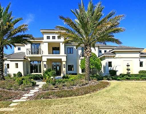 GORGEOUS SPANISH DESIGNED HOME WITH INCREDIBLE VIEWS OF THE 18TH GREEN OF THE GOLDEN BEAR GOLF COURSE AND ALL THE WATER THAT SURROUNDS IT. KEENES POINTE WINDERMERE...A GREAT ADDRESS!!
