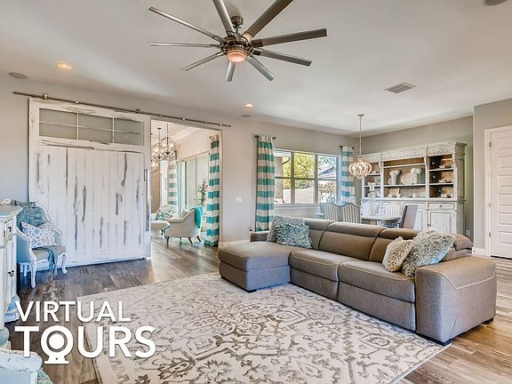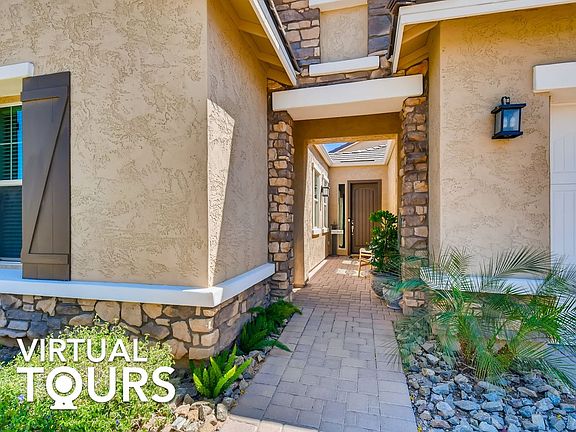 Complete turnkey 4 bd / 3 ba home located in a gorgeous gated community! The home backs on one side to a gated trail, the front faces a community park, giving this home tons of privacy and making it one of the most desirable lots in the neighborhood. Don’t miss the open concept living space with beautiful flooring and stunning light fixtures, featuring a bonus room with kitchenette/office, and resort-like backyard, built-in grill, firepit, and hot tub. This home is the epitome of indoor/outdoor living, boasting a bifold window between the kitchen and backyard bar counter, sliding glass doors throughout leading to the serene courtyard and a large travertine stone covered patio with built-in speakers and meticulously maintained landscaping viewable from all angles of the interior. The kitchen will impress any chef, with its stainless steel appliances, glass tile backsplash, gas cooktop, and center island with seating for 6. The bonus room will make a great office or guest accommodation. When it’s time to wind down, opt for any of the large bedrooms with walk-in closets; the primary has a luxurious ensuite bath, with double vanities, glass enclosed shower, soaking tub, and upgraded tile flooring, while the others share the two full baths. Other features: laundry room, 2-car garage with overhead storage and epoxy flooring. HOA fees cover the parks, pool, clubhouse, and gate. Located near top rated schools, shopping, dining, and golf, with easy access to 202 fwy, Phoenix-Mesa Gateway Airport, and Downtown Phoenix! Buyer should verify all information.