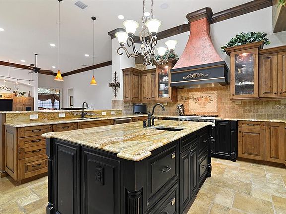 - Interior Features: Ceiling Fans(s), Eating Space In Kitchen, High Ceiling(s), Master Bedroom Downstairs, Split Bedroom, Stone Counters, Walk-In Closet(s), Crown Molding, Solid Wood Cabinets, Kitchen/Family Room Combo, Living Room/Dining Room Combo, Built in Features, Central Vaccum, Wet Bar, Dry Bar, Tray Ceiling(s), Coffered Ceiling(s)