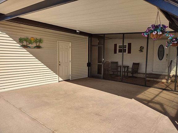 Ready to move south or downsize? A fantastic Florida home plus GARAGE awaits you in an affordable 55+ community! Lots of upgrades in this adorable TURNKEY- open floor plan- 2 bedroom plus DEN (1177 SF) manufactured home! The 2015 ROOF has 2 inches of insulation! A/C was new in 2015 as well and the home has triple pane windows with adjustable awnings... you WILL enjoy low energy bills! This clean home features: new white kitchen cabinets and countertop, updated lighting and fans, new vanities, updated toilets, mainly laminate floor, freshly painted walls and ceiling!!! The single car garage has many cabinets for storage with work bench and sink, indoor laundry room. The DOUBLE carport has ample room for 2 cars, and features a corrugated clear acrylic panel to keep the carport AND the screened-in lanai DRY! This one won't last long...This active community is pet friendly (2 pets under 25 lbs) Amenities include swimming pool, spa, saunas, tennis court, shuffleboard, library, game room, craft room, fitness room, ballroom, loads of activities! Lot rent is only $552 per month that includes lawn mowing and trimming plus amenities! All listing information is deemed reliable but not guaranteed and should be independently verified through personal inspection by appropriate professionals. Integrity Mobile Home Sales cannot guarantee or warrant the accuracy of this information, measurements, or condition of any property. Measurements are approximate. Lot rent is subject to change.