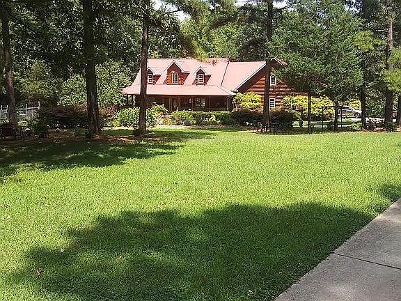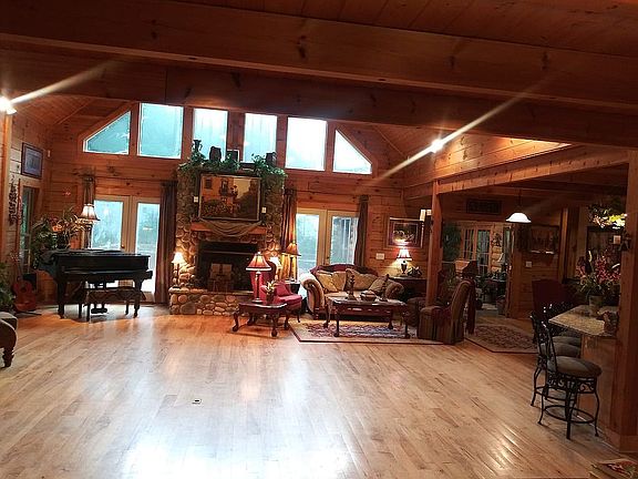 Truly unique! It's like owning 2 homes under one roof: 2 kitchens, 2 garages, 2 dens, 2 fireplaces-a suite for elderly parents perhaps? 6 bedrooms, secluded 6.64 acres, pool, wrap-around porch, no HOA fees, no city taxes, delicious well water (365 ft. deep), area for vegetable garden, nectarine, fig and apple trees, lots of storage, low electric bill since logs insulate well and the windows are high grade. Even comes with a generator! Square footage verified by appraiser. Redfin estimate: $1,286,226