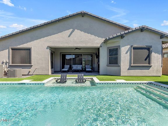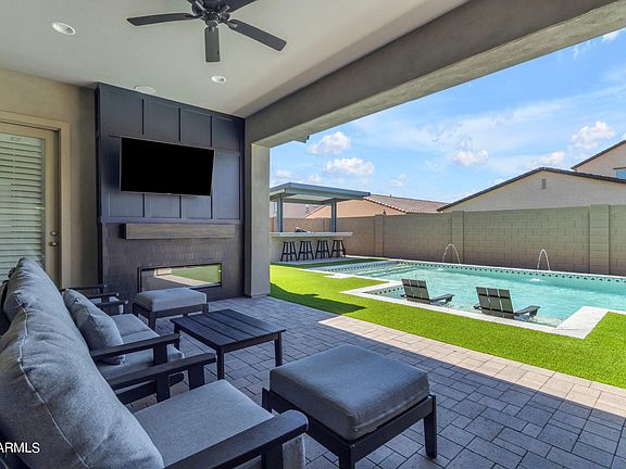 BRAND NEW 1YR OLD Luxury MODEL home located in the HIGHLY desired EASTMARK Subdivision. With over $300k in finishes this home is true LUXURY. This beautiful single level split layout includes 4 large bedrooms PLUS a HUGE DEN, 3.5 baths which includes an additional en suite with FULL bath. The Master suite includes a fireplace and all of the LUXURY touches expected in a TRUE PRIMARY suite. The entertainment focused living, dining and outdoor space is connected by custom accordion sliding doors expanding the living space. Outdoor finished include custom sandstone TRAVERTINE, an outdoor fireplace, covered BBQ pavilion with this gorgeous Resort Style Backyard with POOL. This home is located minutes from the 202, 60 and 24 along with award winnings Gilbert Schools, restaurants and shopping.
